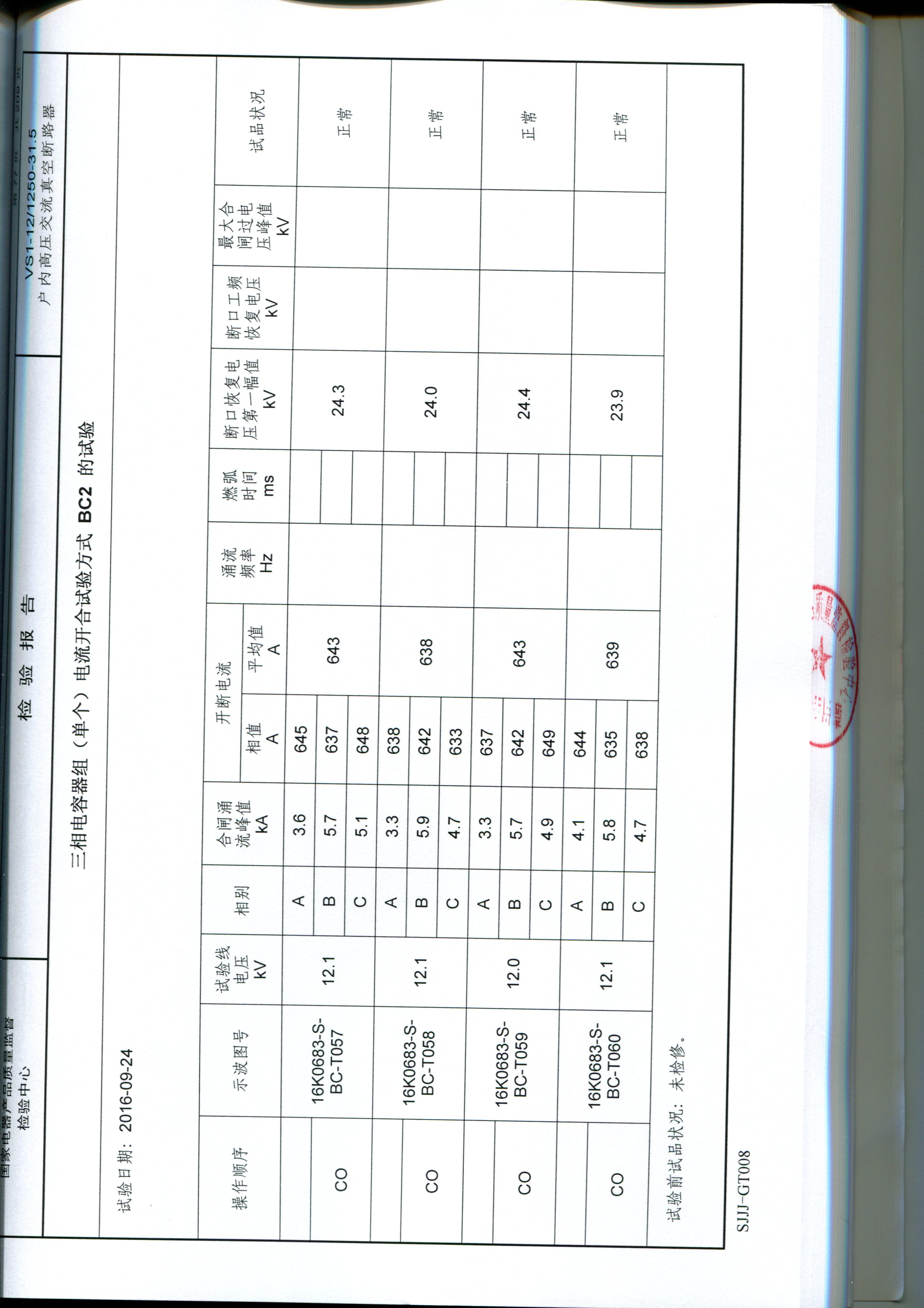 020交流金属环网开关设备试验报告