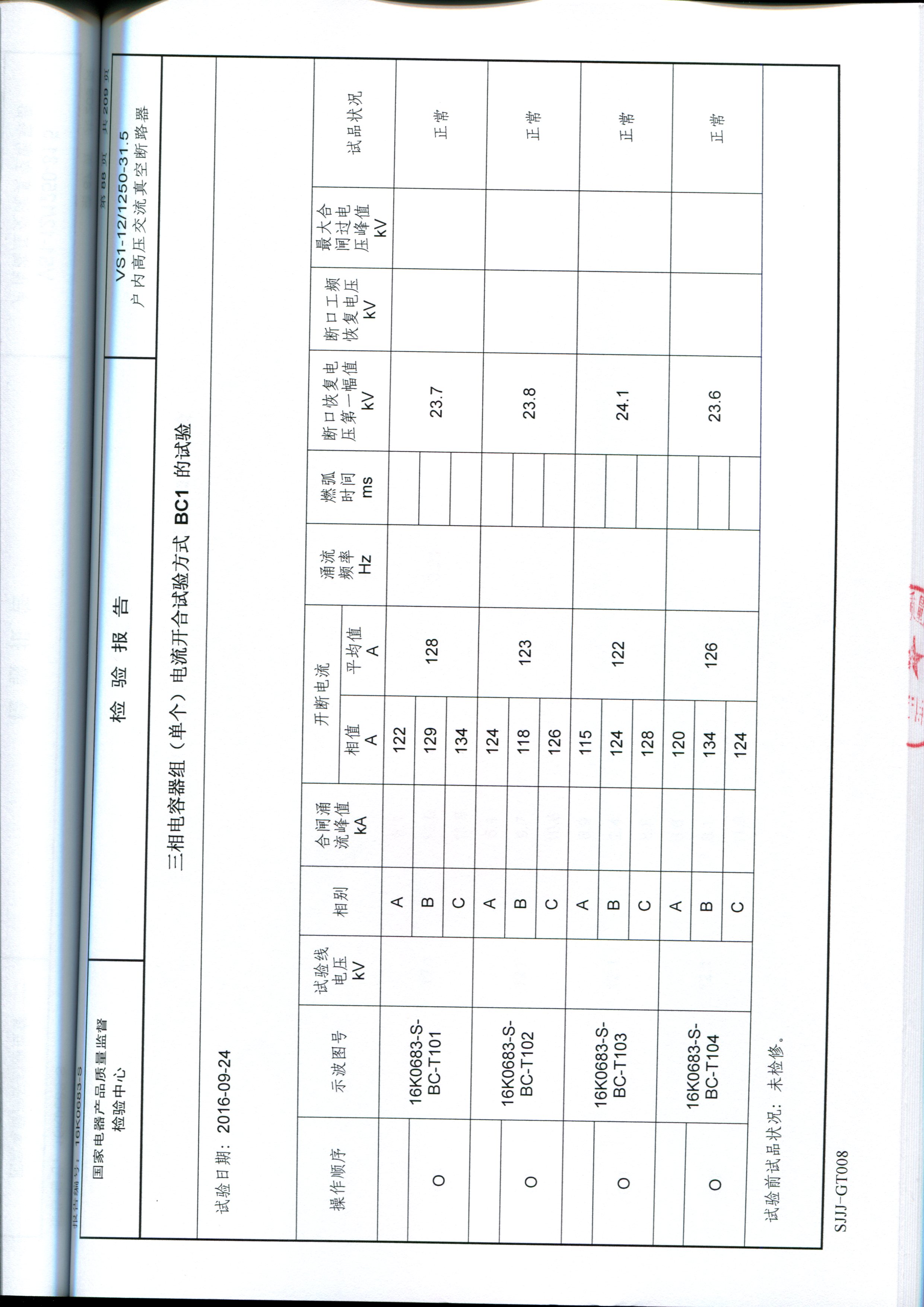019交流金属环网开关设备试验报告