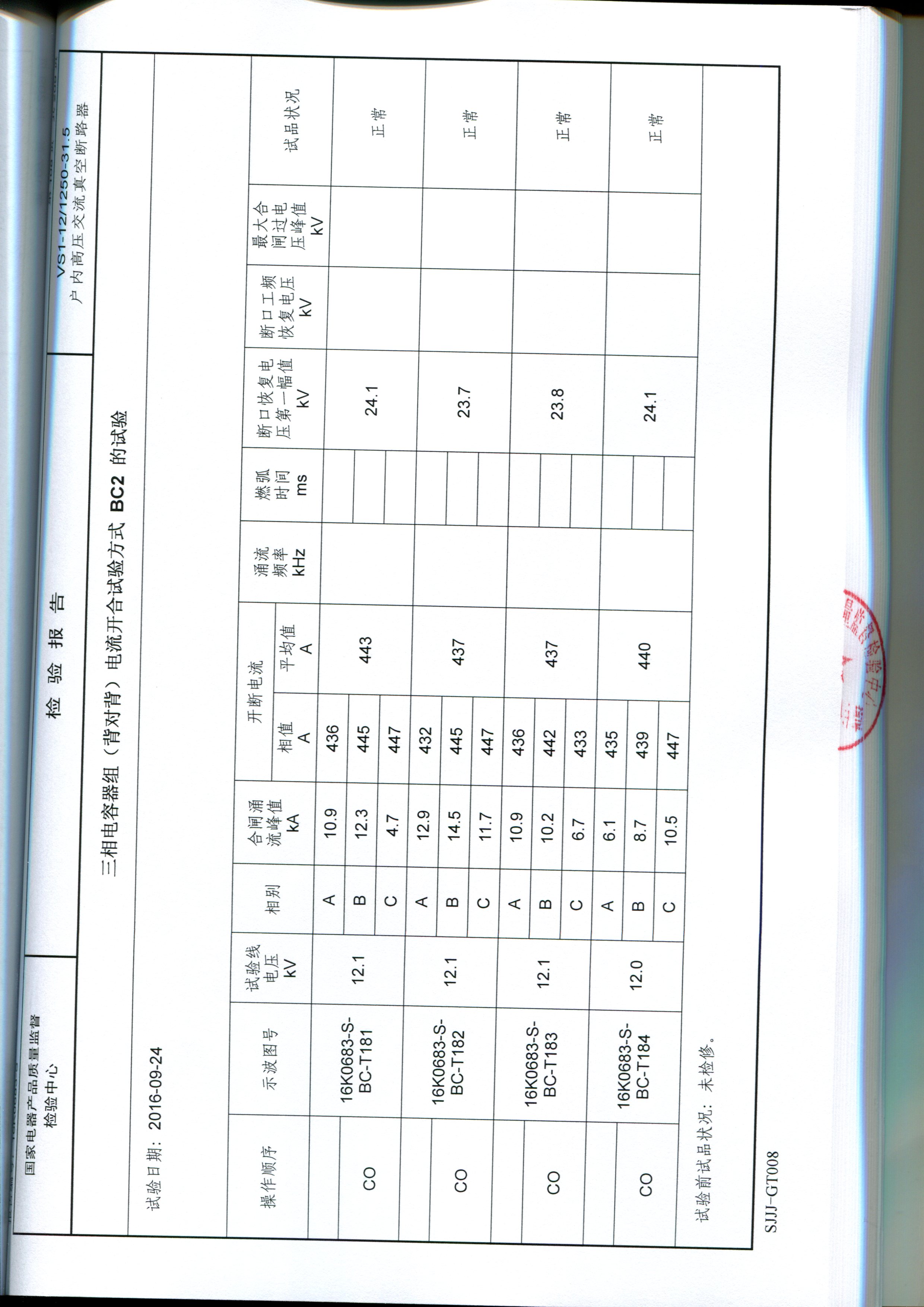 019交流金属环网开关设备试验报告