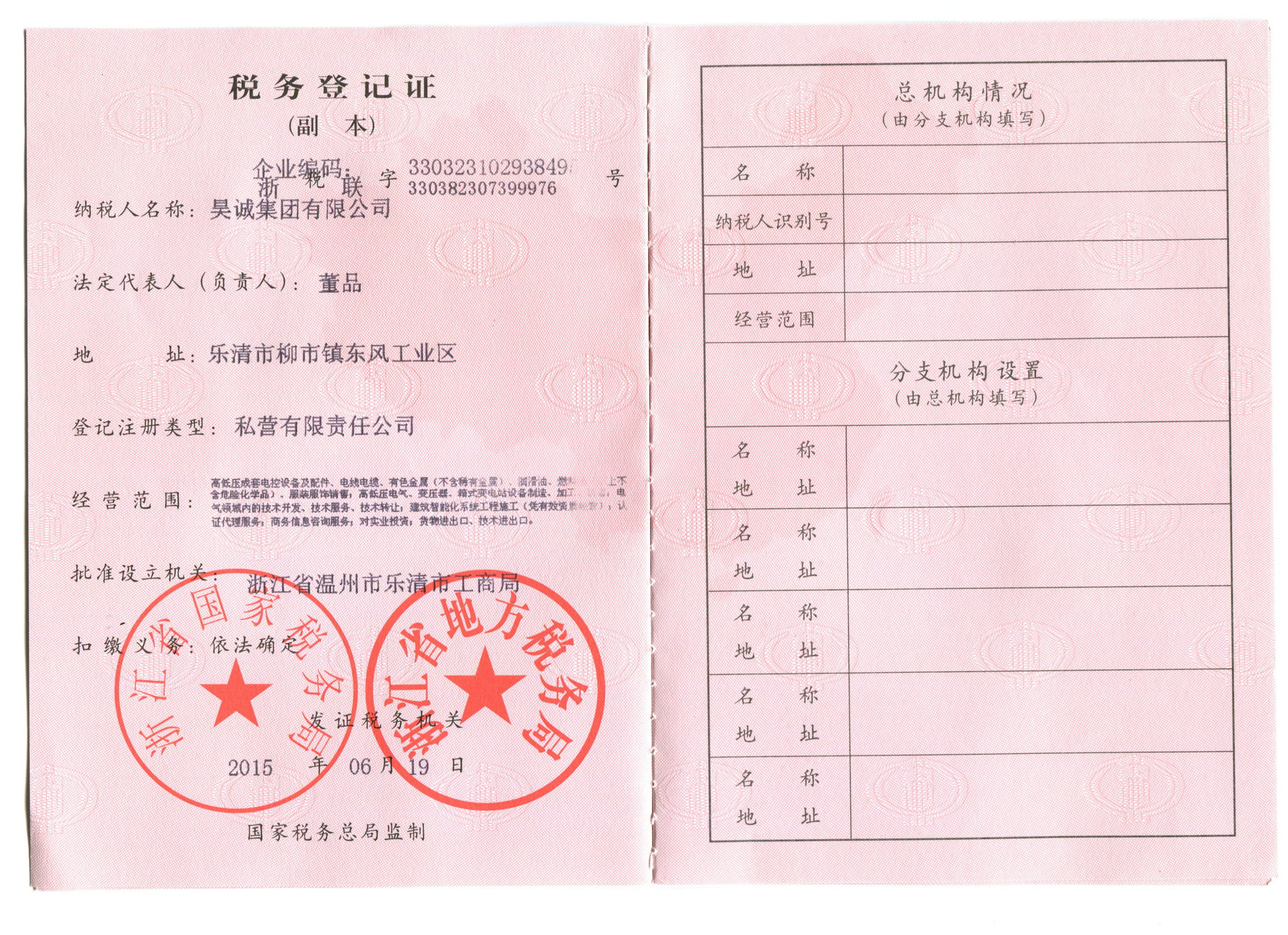 税务登记证(副本) | 税务证件 | 资质证书中心 | 昊诚集团有限公司