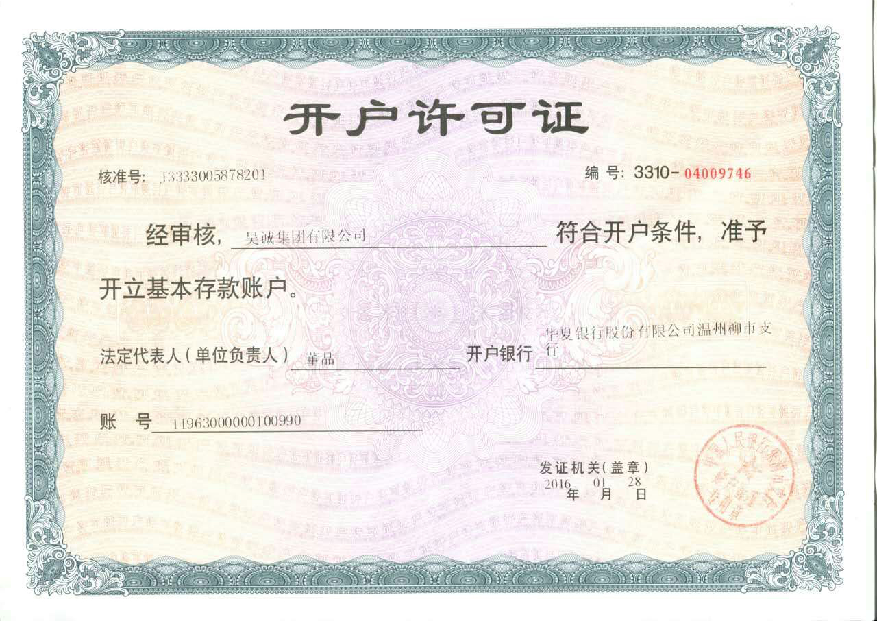 开户许可证 | 企业登记证 | 资质证书中心 | 昊诚集团有限公司