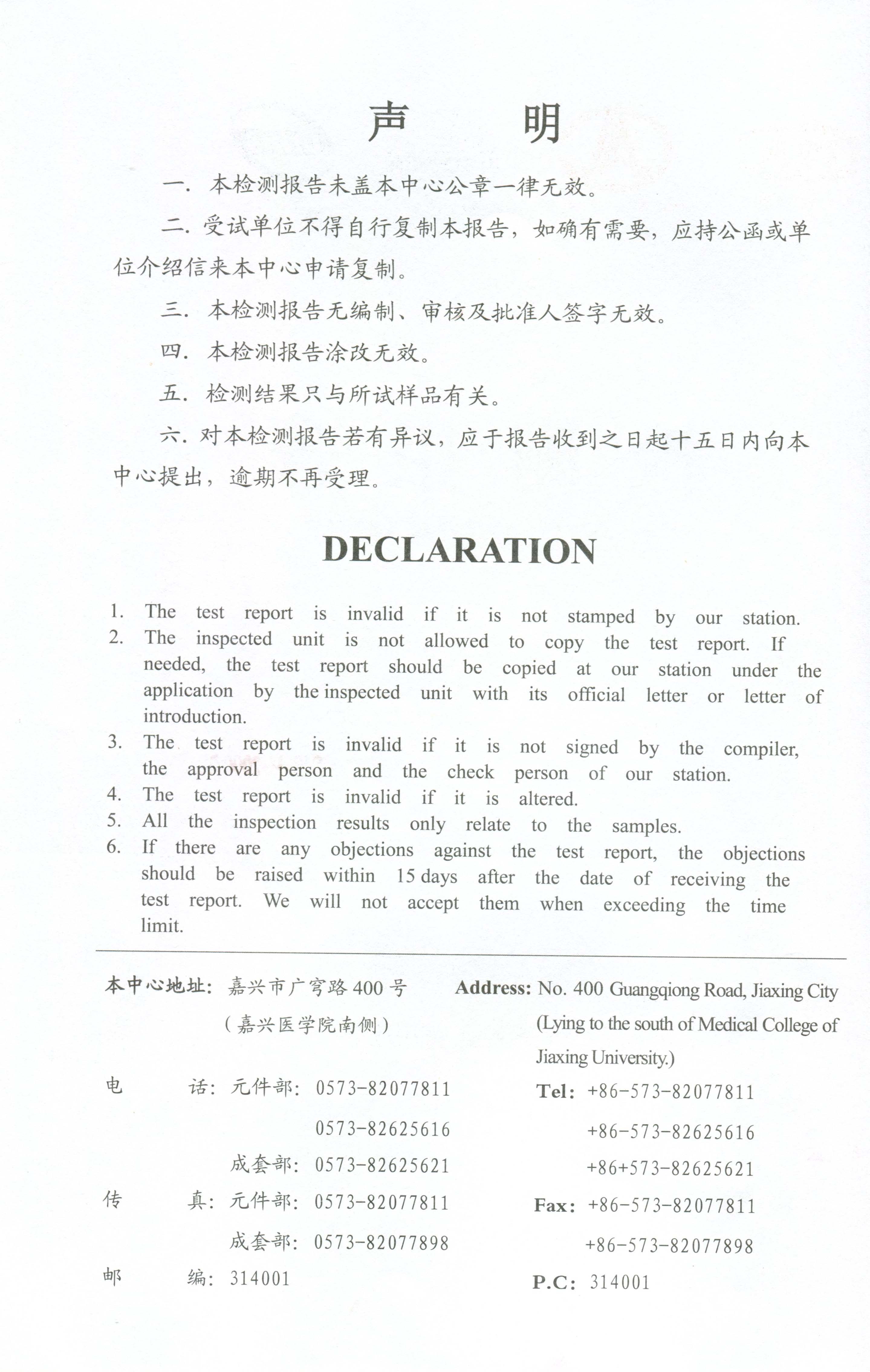 声明 | S13-M-2000/10检测报告 | 资质证书中心 | 昊诚集团有限公司